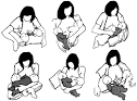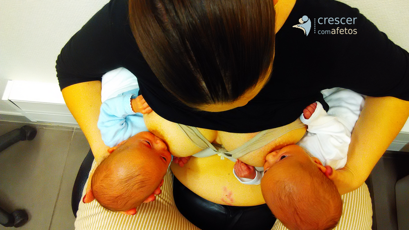 Nas imagens estão representadas diversas posições para amamentação em simultâneo.