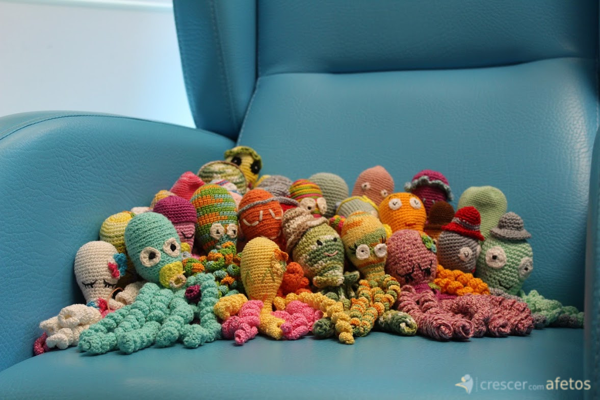 Por questões de segurança, os polvos de crochê devem ser 100% algodão para poderem ser lavados e desinfetados.